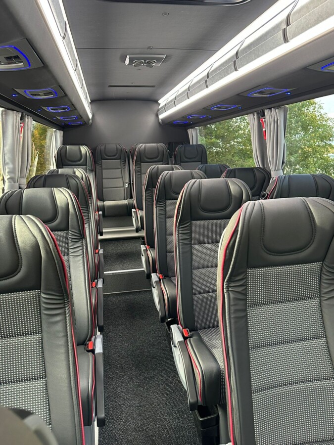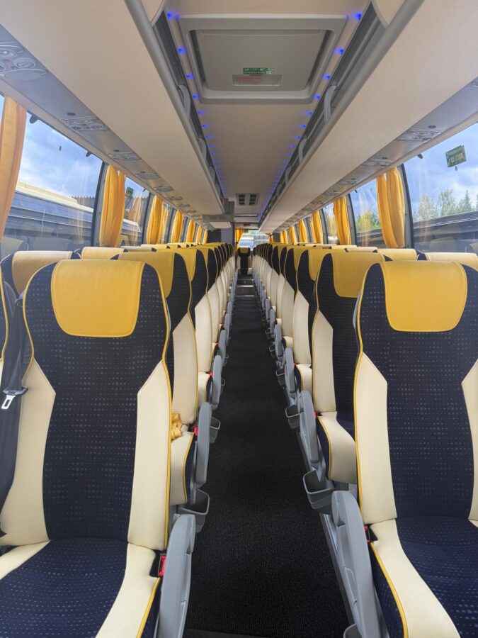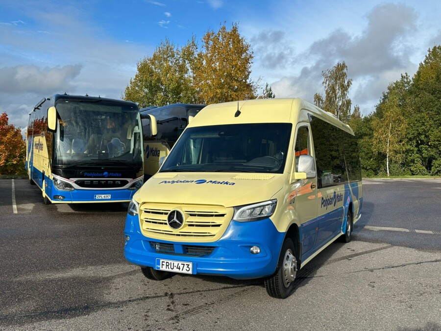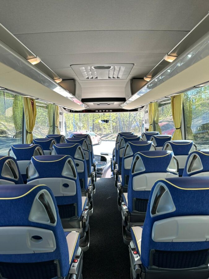 Bussivalikoimastamme löytyy vaihtoehto jokaiseen matkatarpeeseen; valittavanasi on erikokoisia busseja 15-66 -paikkaisen bussin väliltä. Ajoneuvoistamme löytyy kokoluokan mukaan mm. seuraavat varusteet: ilmastointi, latauspistokkeet, säädettävät istuimet, jääkaappi ja wc – lisäksi matkan turvallisuutta lisäävät alkolukko ja turvavyöt. Kysy meiltä myös invavarusteltua erikoisbussia! Voit lukea lisää bussiemme turvallisuudesta tästä.